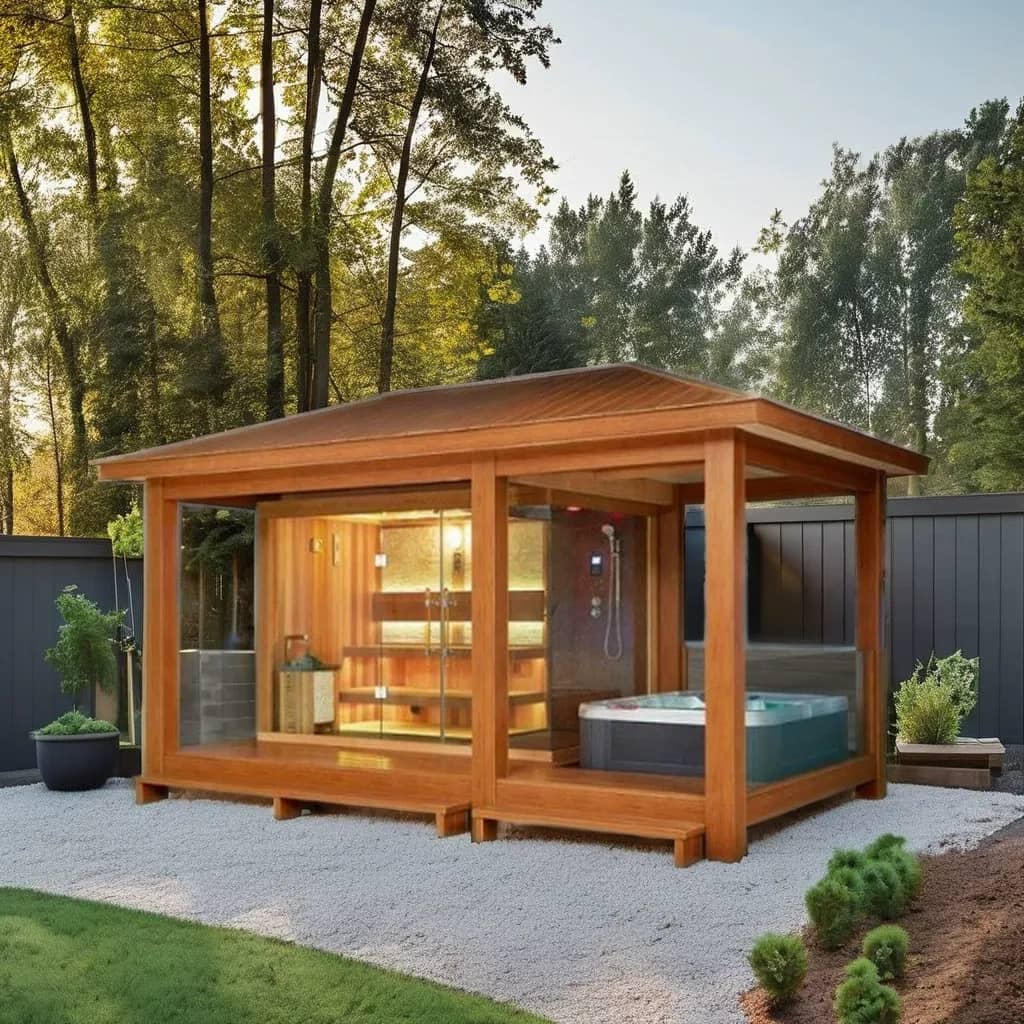 ນີ້ Outdoor Integrated Sauna Jacuzzi Combo - Solid Wood Tempered Glass Courtyard/Villa ແມ່ນສະຖານທີ່ພັກຜ່ອນແບບປະສົມປະສານທີ່ຖືກອອກແບບມາສະເພາະສໍາລັບພື້ນທີ່ກາງແຈ້ງເຊັ່ນ: ເດີ່ນແລະເຮືອນວິນລາ. ມັນລວມຫ້ອງ sauna ແລະ jacuzzi ພາຍໃນໂຄງສ້າງໄມ້ແຂງ, ຈັບຄູ່ກັບຝາແກ້ວໂປ່ງໃສ. ໃນຂະນະທີ່ຮັກສາໂຄງສ້າງທໍາມະຊາດ, ມັນປະສົມປະສານກັບສະພາບແວດລ້ອມກາງແຈ້ງ (ສີຂຽວ, ພື້ນຜິວທີ່ມີປູຢາງ), ສ້າງພື້ນທີ່ພັກຜ່ອນສ່ວນຕົວສໍາລັບຄອບຄົວ. ຮູບພາບຊຸດຕໍ່ໄປຈະສະແດງໃຫ້ເຫັນການອອກແບບປະສົມປະສານ, ລາຍລະອຽດວັດສະດຸ, ຜົນກະທົບການຕິດຕັ້ງ, ແລະສະຖານະການການນໍາໃຊ້ຈາກຫຼາຍມຸມ, intuitively ນໍາສະເຫນີຂໍ້ໄດ້ປຽບຂອງຜະລິດຕະພັນ.