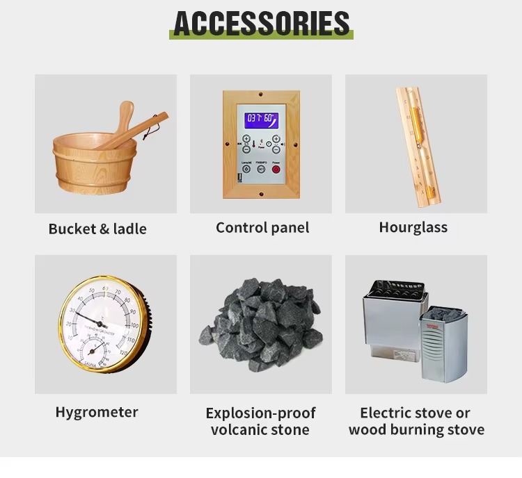 • ພາຍໃນ: ຫໍ່ດ້ວຍໄມ້ແຂງ + ແສງສະຫວ່າງທີ່ອ່ອນໆ, ຕິດກັບຕາຕະລາງແລະເຕົາທີ່ມີມືອາຊີບ, ສ້າງບັນຍາກາດ sauna ທີ່ອົບອຸ່ນແລະຜ່ອນຄາຍ