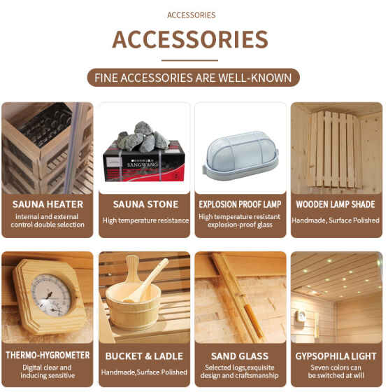 ອຸປະກອນເສີມປ້ອງກັນຄວາມປອດໄພ: ໂຄມໄຟຕ້ານການລະເບີດກາງແຈ້ງ (ແກ້ວປ້ອງກັນການລະເບີດທີ່ທົນທານຕໍ່ອຸນຫະພູມສູງ + ແກະກັນນ້ໍາ), ຮົ່ມໂຄມໄຟໄມ້ຕ້ານການກັດກ່ອນ (ຂັດດ້ວຍມື), ການດຸ່ນດ່ຽງຄວາມປອດໄພກາງແຈ້ງແລະໂຄງສ້າງທໍາມະຊາດຂອງ.ປະຕູແກ້ວກາງແຈ້ງຫ້ອງອົບໄອນ້ໍານອກ.