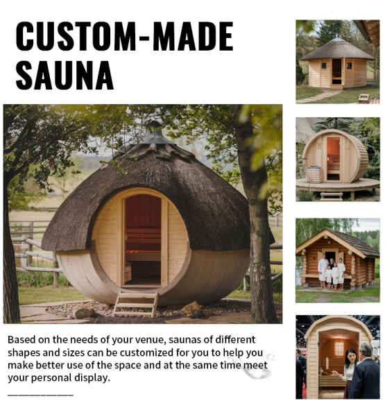 ການປັບແຕ່ງຮູບຮ່າງ: ເນັ້ນໃສ່ຮູບຊົງພາຍນອກທີ່ສາມາດປັບຕົວໄດ້ເຊັ່ນ: ຮູບຊົງຖັງ, ຮູບຊົງເຮືອນໄມ້, ແລະຮູບຊົງກົມ, ການດຸ່ນດ່ຽງການໃຊ້ພື້ນທີ່ ແລະ ຄວາມສວຍງາມຂອງທຳມະຊາດ. ບໍ່ວ່າຈະຢູ່ໃນມຸມ courtyard ຫຼືສະຖານທີ່ຕັ້ງແຄມ, ໄດ້ປະຕູແກ້ວກາງແຈ້ງຫ້ອງອົບໄອນ້ໍານອກສາມາດປະສົມປະສານຢ່າງກົມກຽວກັບສະພາບແວດລ້ອມກາງແຈ້ງເຊັ່ນ: ຕົ້ນໄມ້ສີຂຽວ ແລະຫີນ.