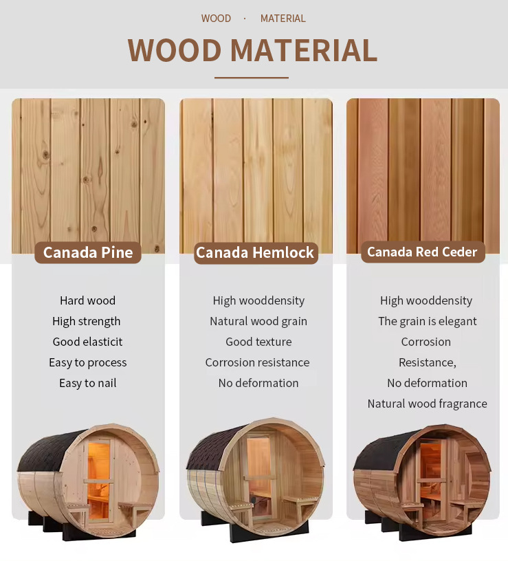 ປະສົບການກາງແຈ້ງພິເສດ: ຫ້ອງອົບອາຍນ້ຳທີ່ມີຮູບຊົງຖັງກາງແຈ້ງຂອງປະຕູແກ້ວກາງແຈ້ງຫ້ອງອົບໄອນ້ໍານອກຊຸດສາມາດຈັບຄູ່ກັບຖັງນ້ໍາເຢັນແລະບ່ອນພັກຜ່ອນເພື່ອບັນລຸປະສົບການຊາວຫນ້າແບບດັ້ງເດີມຂອງ "ການອົບຮ້ອນ + ອາບນ້ໍາເຢັນ". ອາບແດດໃນຍາມກາງເວັນ ແລະເບິ່ງດວງດາວໃນຍາມກາງຄືນ, ຜູ້ໃຊ້ສາມາດສຳຜັດກັບຄວາມສົມດູນຂອງທຳມະຊາດ ແລະ ສຸຂະພາບທີ່ດີ.ປະຕູແກ້ວກາງແຈ້ງຫ້ອງອົບໄອນ້ໍານອກ.